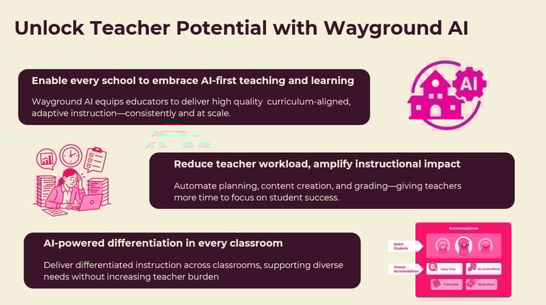 This partnership marks an exciting step forward in advancing educational opportunities for young people. Together, we're ushering in a new era of personalized learning—where AI-powered solutions provide individualized support while keeping teachers at the heart of education. We look forward to working with Wayground to ensure every learner receives the personalized guidance they need to build confidence and achieve success."
